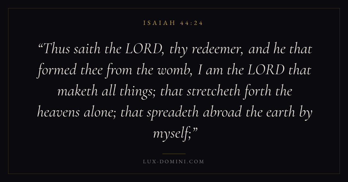 Thus saith the LORD, thy redeemer, and he that formed thee from the womb, I am the LORD that maketh all things; that stretcheth forth the heavens alone; that spreadeth abroad the earth by myself;