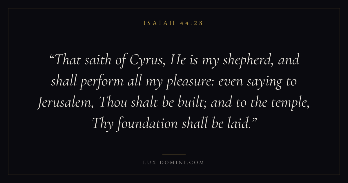 That saith of Cyrus, He is my shepherd, and shall perform all my pleasure: even saying to Jerusalem, Thou shalt be built; and to the temple, Thy foundation shall be laid.
