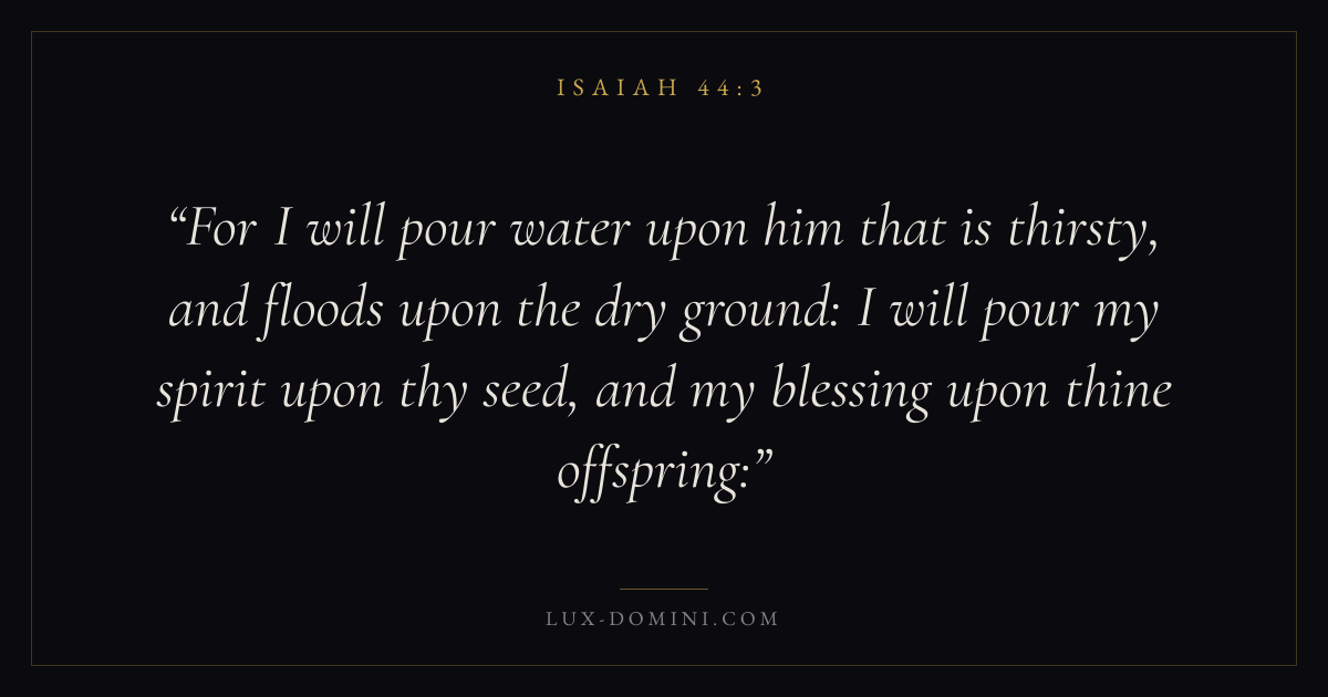 For I will pour water upon him that is thirsty, and floods upon the dry ground: I will pour my spirit upon thy seed, and my blessing upon thine offspring:
