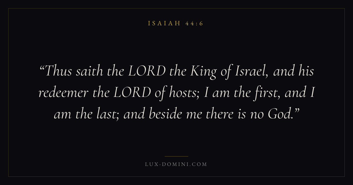Thus saith the LORD the King of Israel, and his redeemer the LORD of hosts; I am the first, and I am the last; and beside me there is no God.