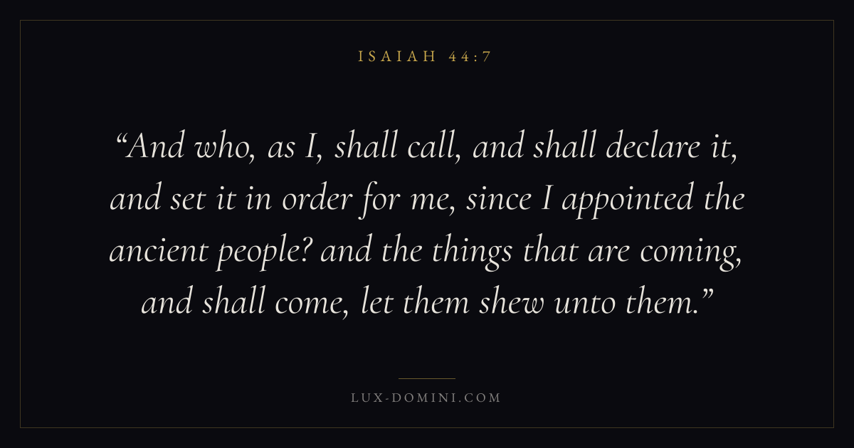 And who, as I, shall call, and shall declare it, and set it in order for me, since I appointed the ancient people? and the things that are coming, and shall come, let them shew unto them.