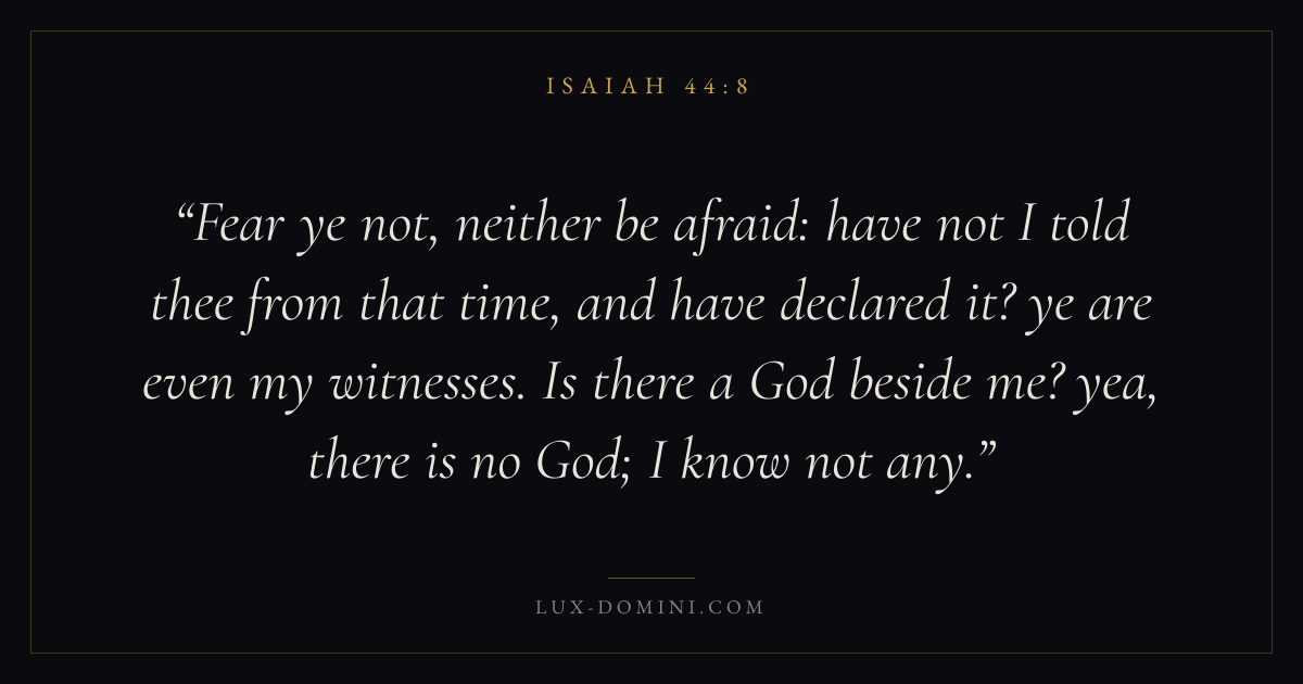 Fear ye not, neither be afraid: have not I told thee from that time, and have declared it? ye are even my witnesses. Is there a God beside me? yea, there is no God; I know not any.
