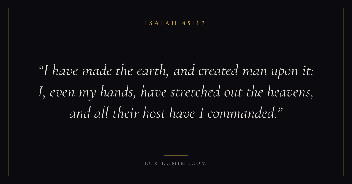 I have made the earth, and created man upon it: I, even my hands, have stretched out the heavens, and all their host have I commanded.