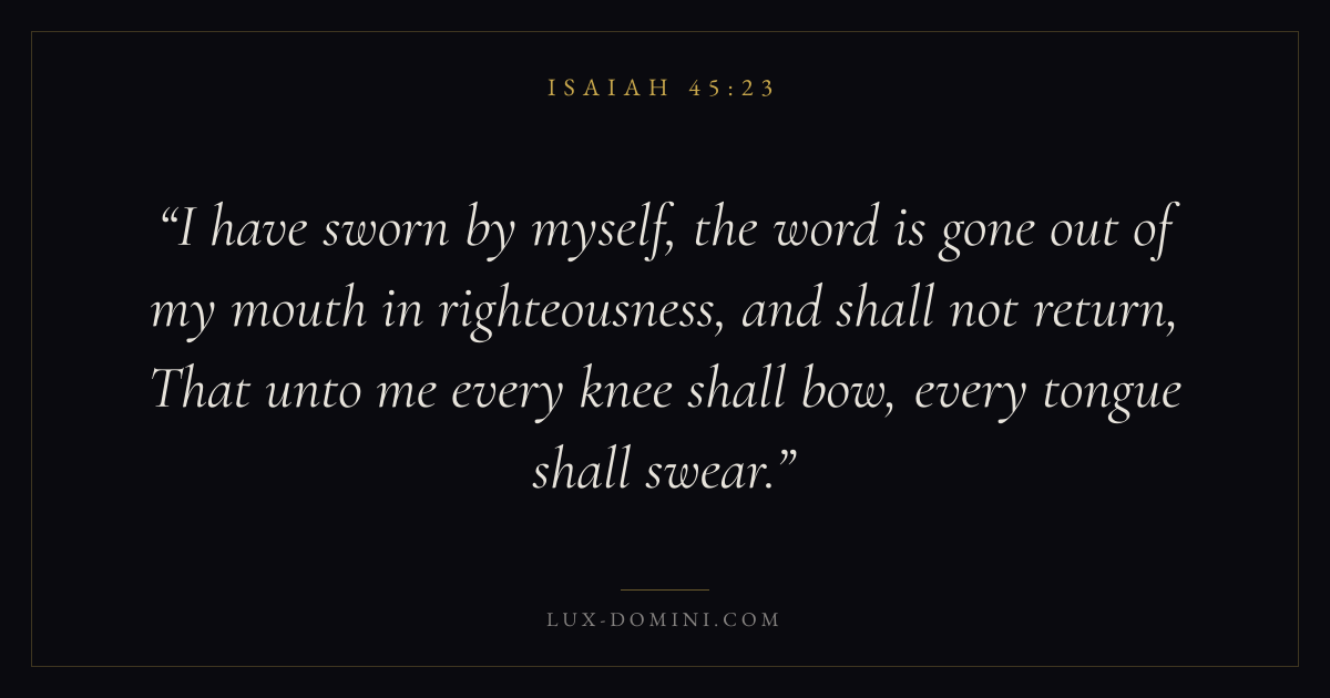 I have sworn by myself, the word is gone out of my mouth in righteousness, and shall not return, That unto me every knee shall bow, every tongue shall swear.