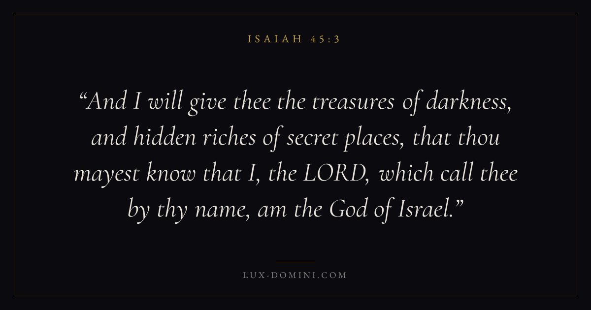And I will give thee the treasures of darkness, and hidden riches of secret places, that thou mayest know that I, the LORD, which call thee by thy name, am the God of Israel.