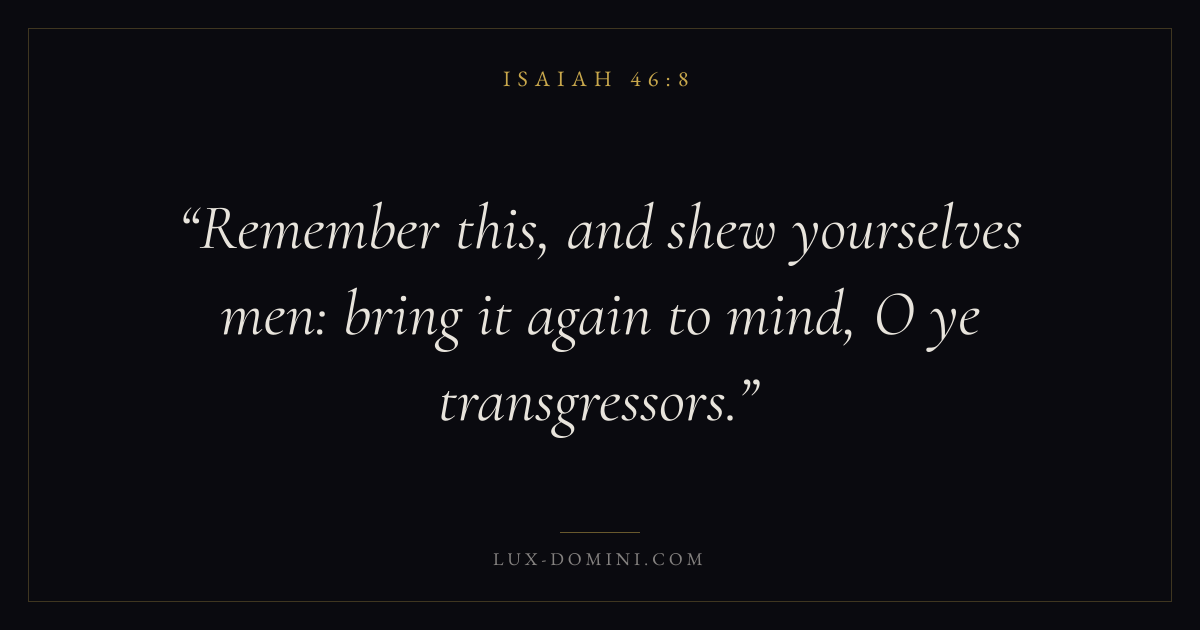 Remember this, and shew yourselves men: bring it again to mind, O ye transgressors.