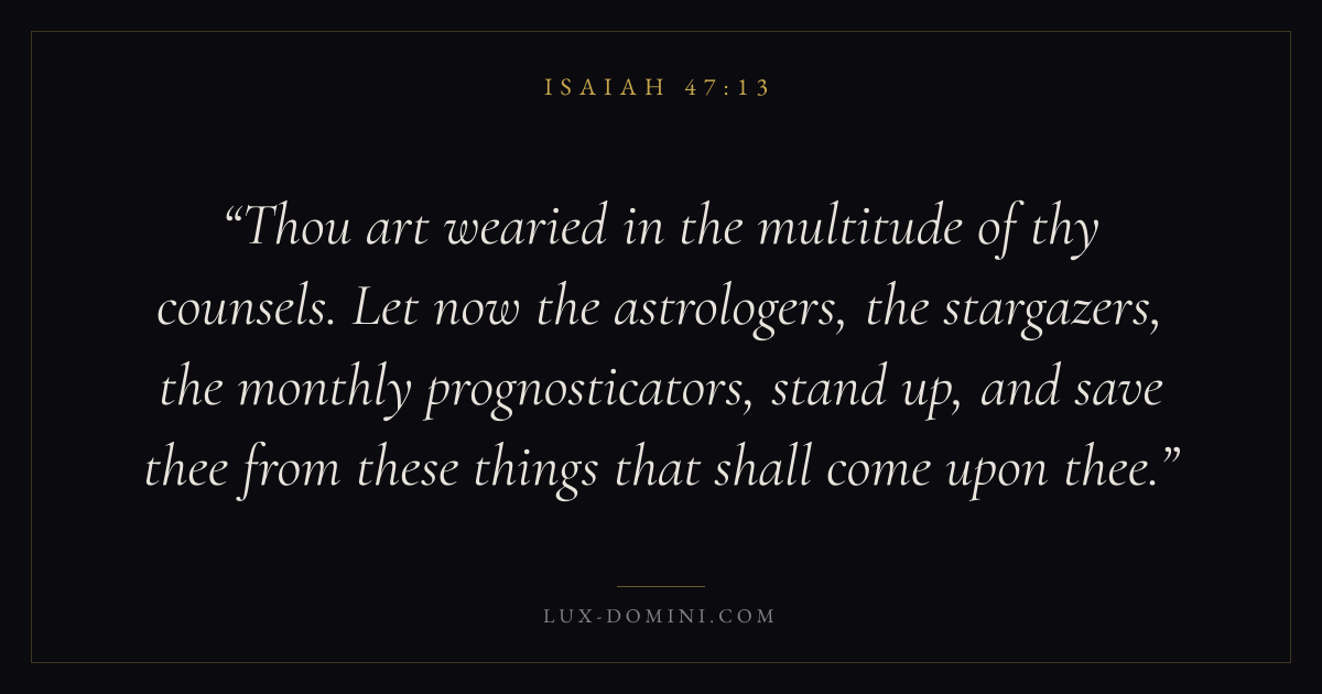 Thou art wearied in the multitude of thy counsels. Let now the astrologers, the stargazers, the monthly prognosticators, stand up, and save thee from these things that shall come upon thee.