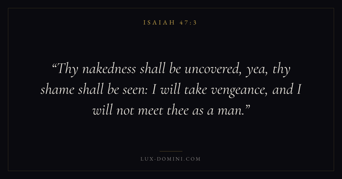 Thy nakedness shall be uncovered, yea, thy shame shall be seen: I will take vengeance, and I will not meet thee as a man.