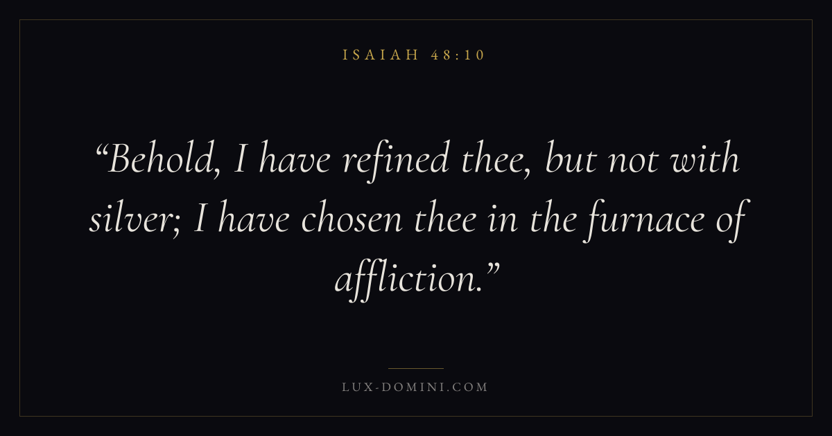 Behold, I have refined thee, but not with silver; I have chosen thee in the furnace of affliction.
