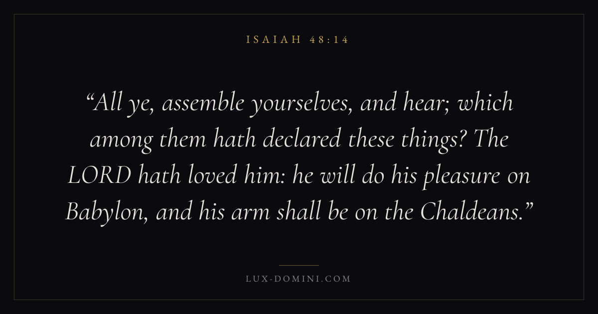 All ye, assemble yourselves, and hear; which among them hath declared these things? The LORD hath loved him: he will do his pleasure on Babylon, and his arm shall be on the Chaldeans.