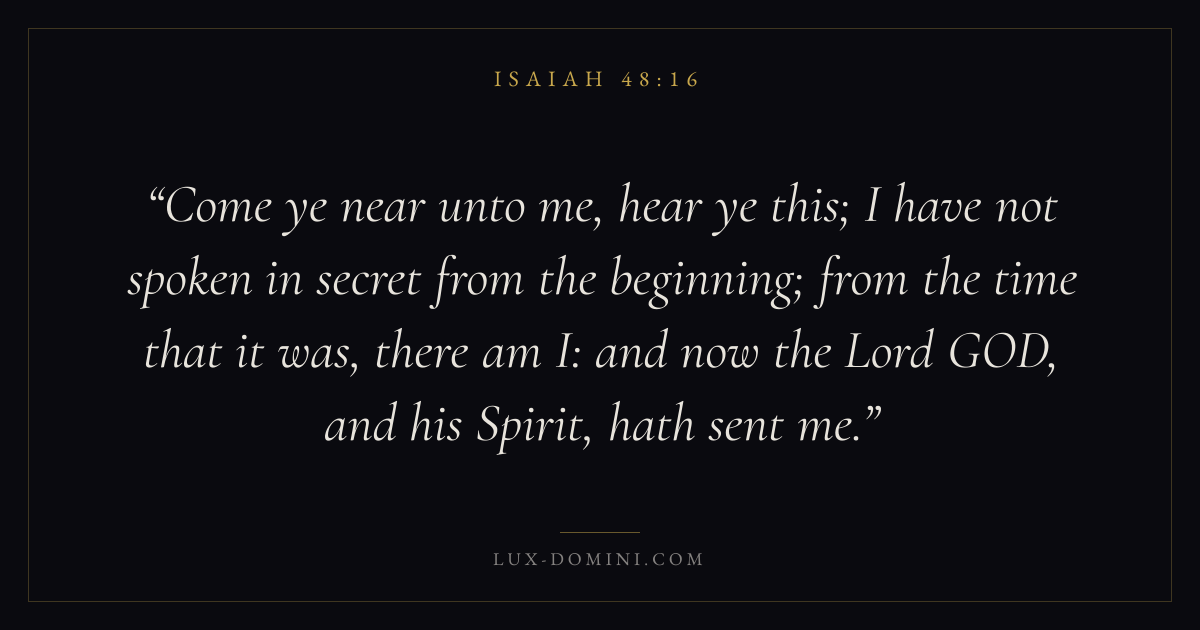 Come ye near unto me, hear ye this; I have not spoken in secret from the beginning; from the time that it was, there am I: and now the Lord GOD, and his Spirit, hath sent me.