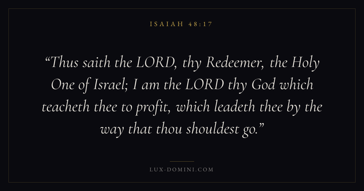 Thus saith the LORD, thy Redeemer, the Holy One of Israel; I am the LORD thy God which teacheth thee to profit, which leadeth thee by the way that thou shouldest go.