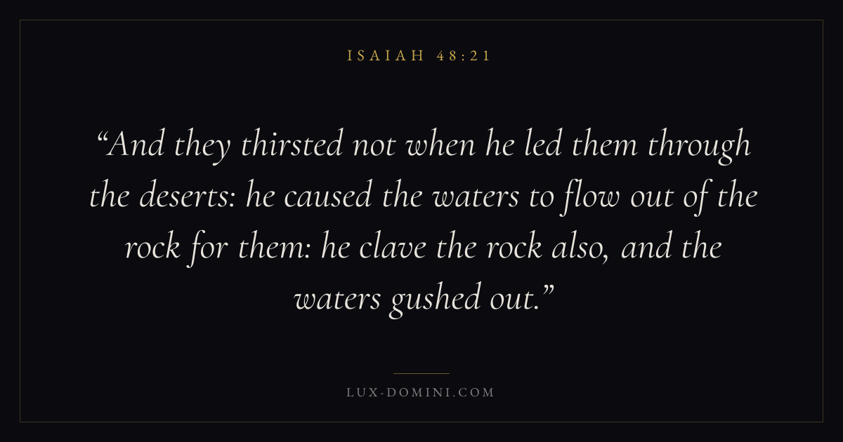 And they thirsted not when he led them through the deserts: he caused the waters to flow out of the rock for them: he clave the rock also, and the waters gushed out.