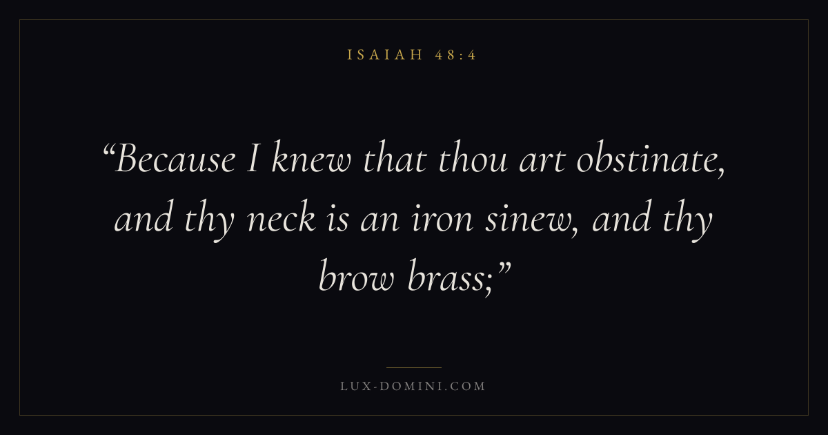 Because I knew that thou art obstinate, and thy neck is an iron sinew, and thy brow brass;