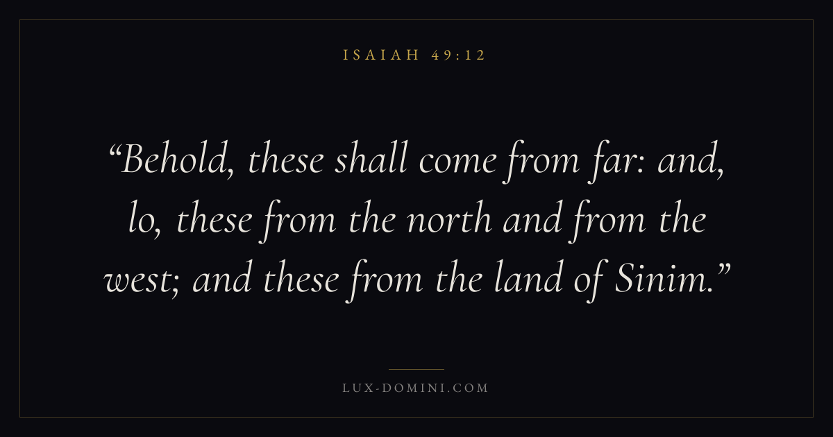 Behold, these shall come from far: and, lo, these from the north and from the west; and these from the land of Sinim.