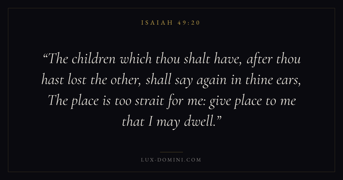 The children which thou shalt have, after thou hast lost the other, shall say again in thine ears, The place is too strait for me: give place to me that I may dwell.