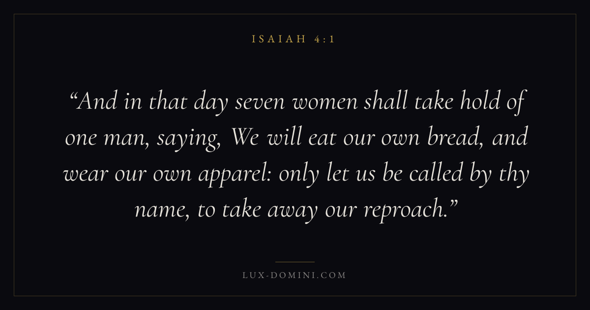 And in that day seven women shall take hold of one man, saying, We will eat our own bread, and wear our own apparel: only let us be called by thy name, to take away our reproach.