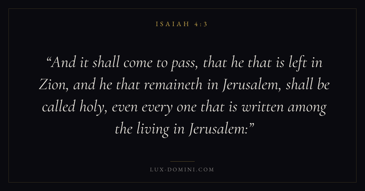 And it shall come to pass, that he that is left in Zion, and he that remaineth in Jerusalem, shall be called holy, even every one that is written among the living in Jerusalem: