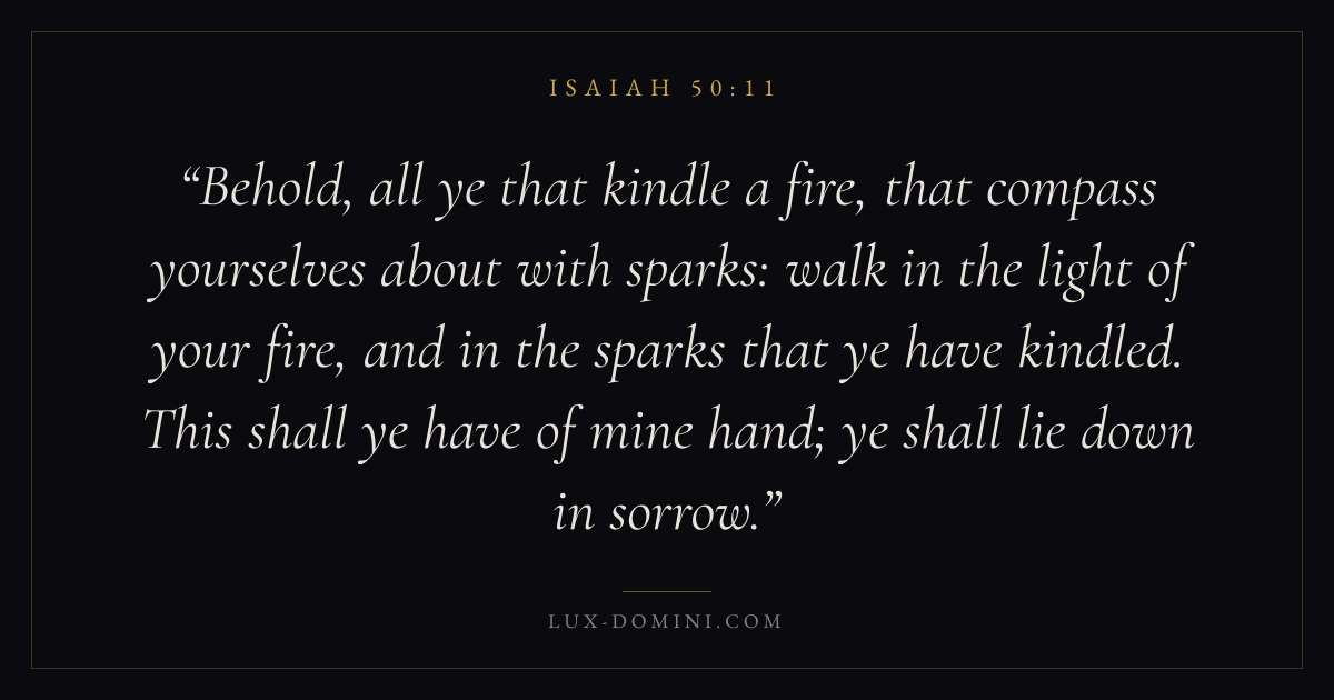 Behold, all ye that kindle a fire, that compass yourselves about with sparks: walk in the light of your fire, and in the sparks that ye have kindled. This shall ye have of mine hand; ye shall lie down in sorrow.