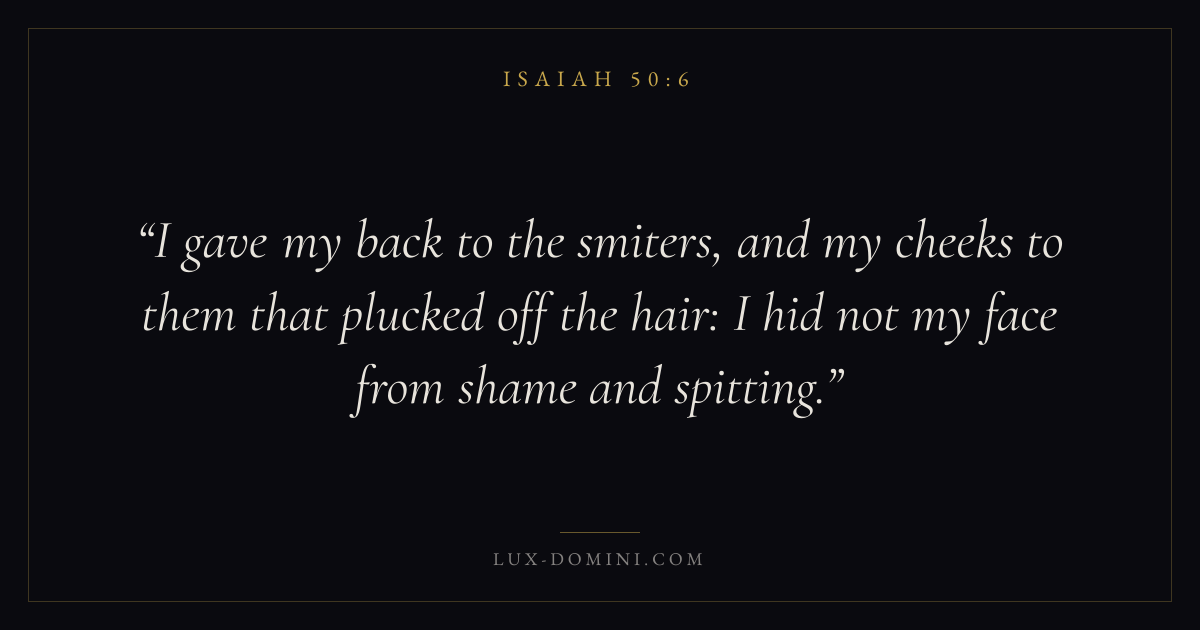 I gave my back to the smiters, and my cheeks to them that plucked off the hair: I hid not my face from shame and spitting.