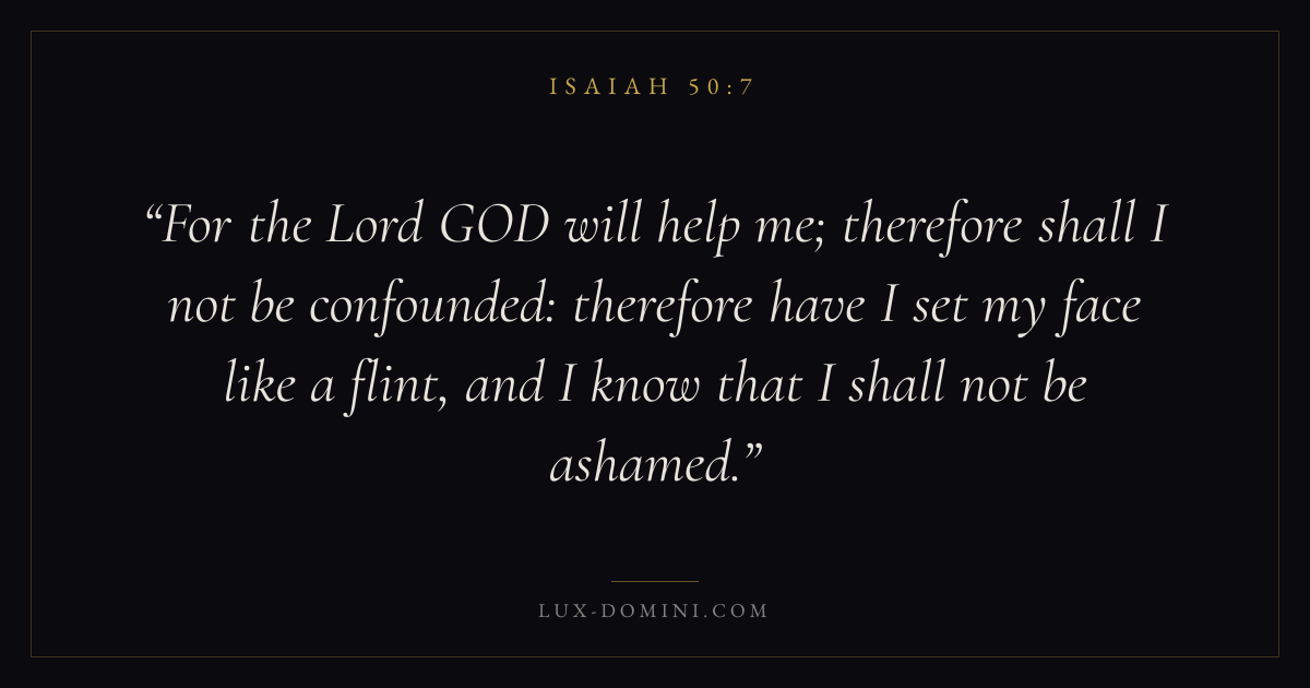 For the Lord GOD will help me; therefore shall I not be confounded: therefore have I set my face like a flint, and I know that I shall not be ashamed.