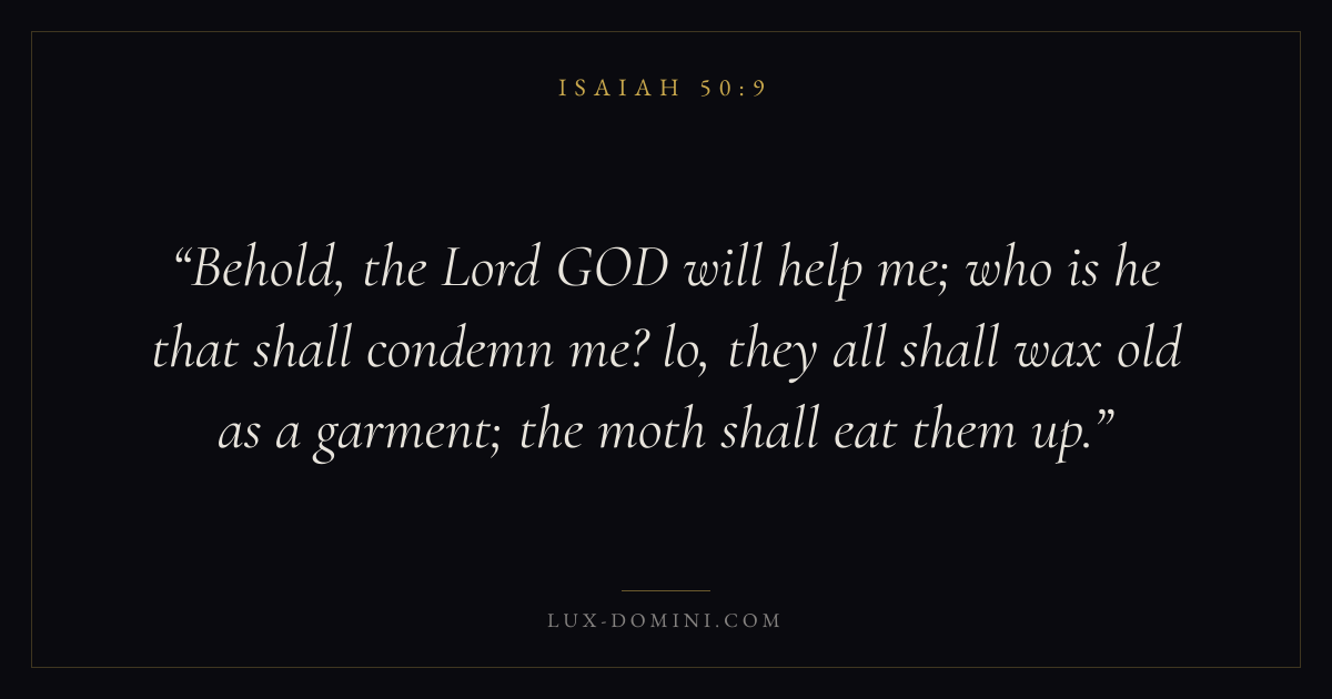 Behold, the Lord GOD will help me; who is he that shall condemn me? lo, they all shall wax old as a garment; the moth shall eat them up.