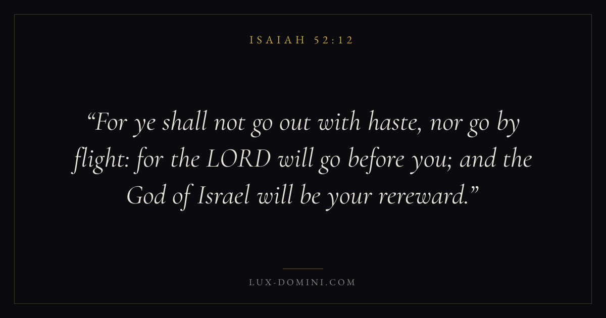 For ye shall not go out with haste, nor go by flight: for the LORD will go before you; and the God of Israel will be your rereward.