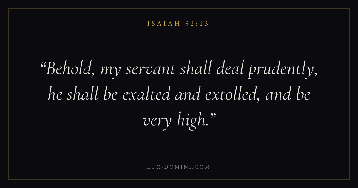 Behold, my servant shall deal prudently, he shall be exalted and extolled, and be very high.