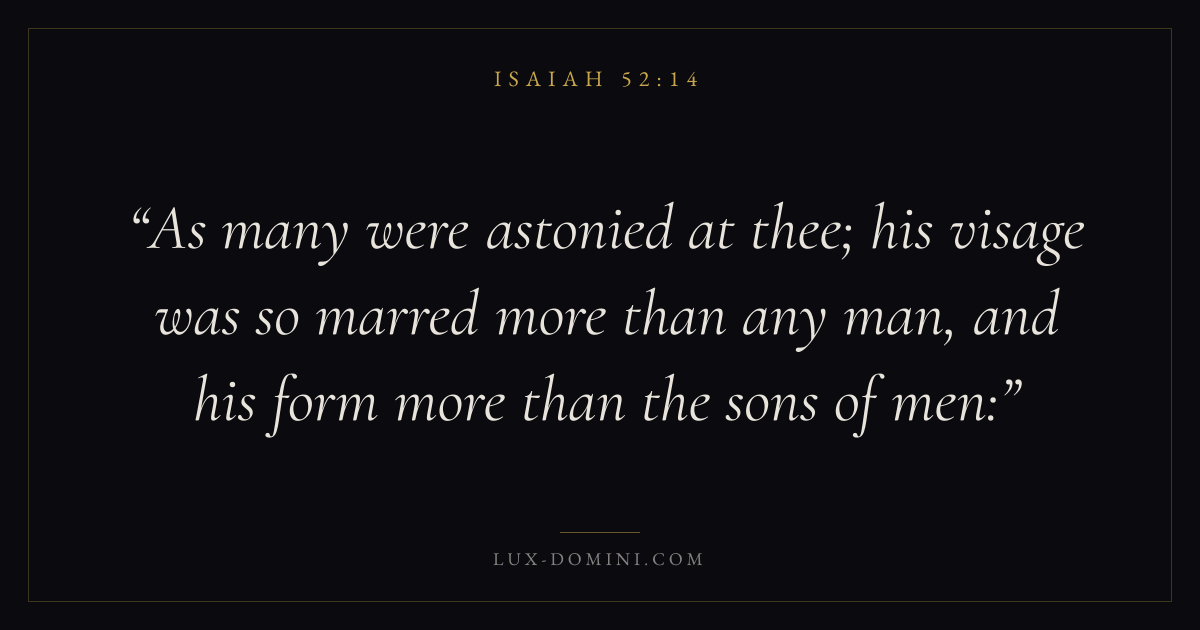 As many were astonied at thee; his visage was so marred more than any man, and his form more than the sons of men: