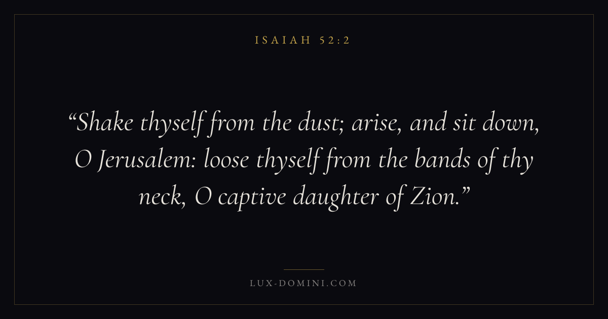 Shake thyself from the dust; arise, and sit down, O Jerusalem: loose thyself from the bands of thy neck, O captive daughter of Zion.