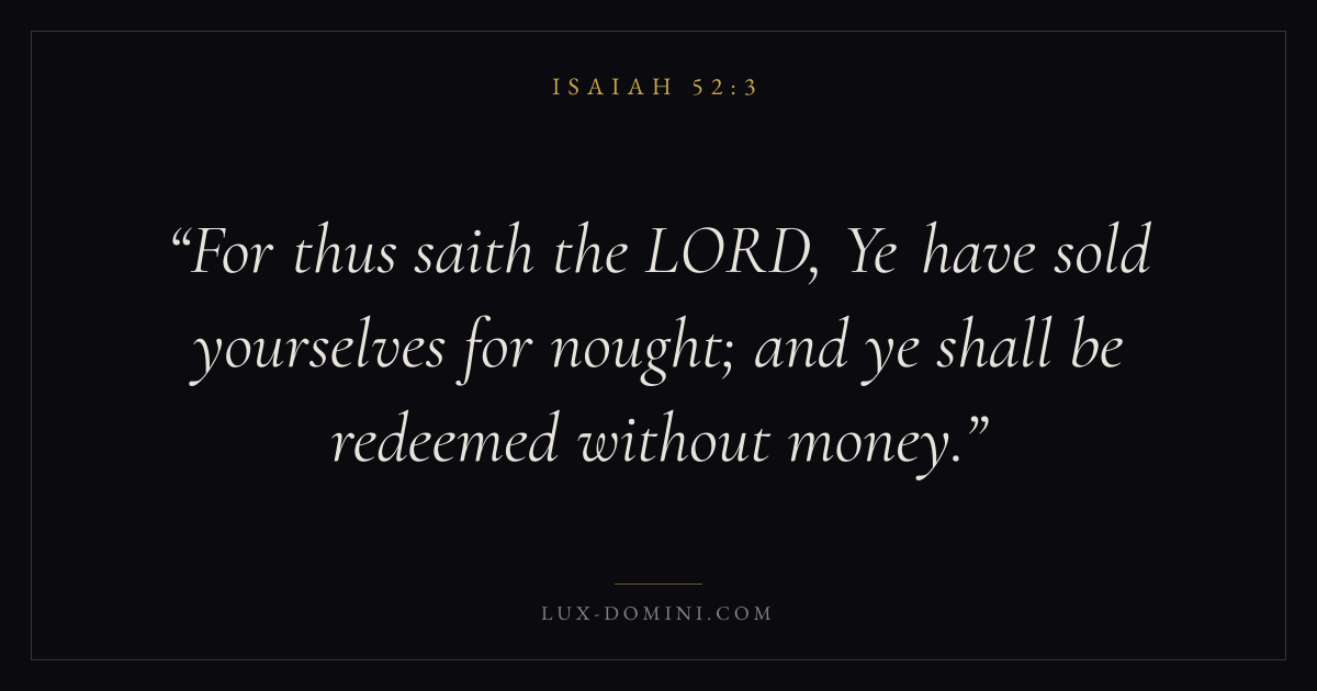 For thus saith the LORD, Ye have sold yourselves for nought; and ye shall be redeemed without money.