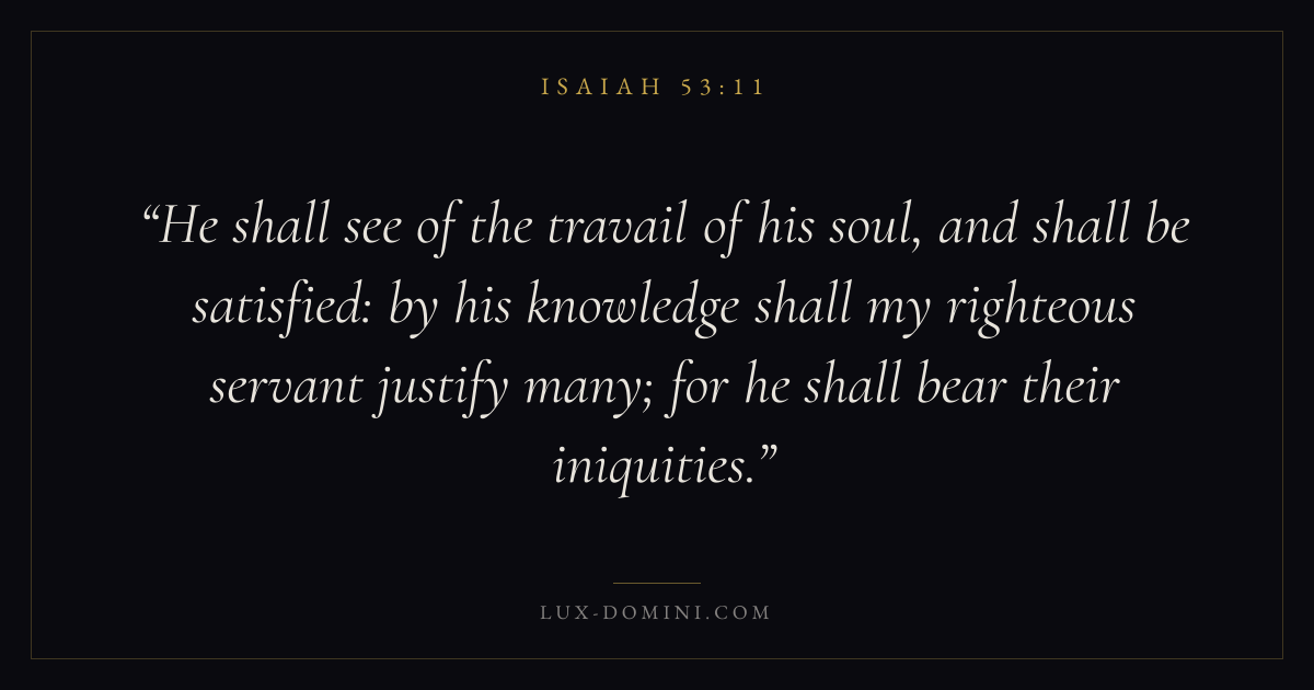 He shall see of the travail of his soul, and shall be satisfied: by his knowledge shall my righteous servant justify many; for he shall bear their iniquities.