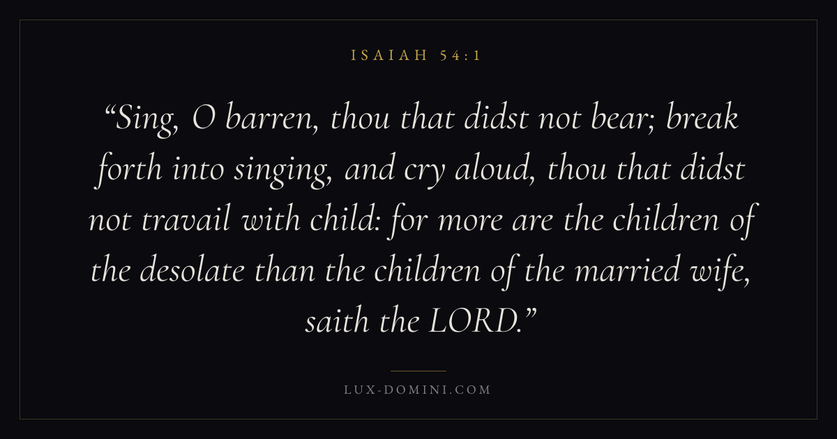 Sing, O barren, thou that didst not bear; break forth into singing, and cry aloud, thou that didst not travail with child: for more are the children of the desolate than the children of the married wife, saith the LORD.