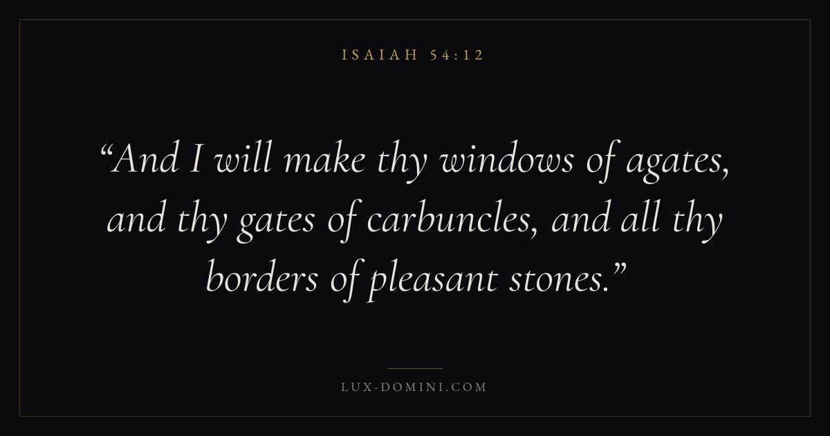 And I will make thy windows of agates, and thy gates of carbuncles, and all thy borders of pleasant stones.