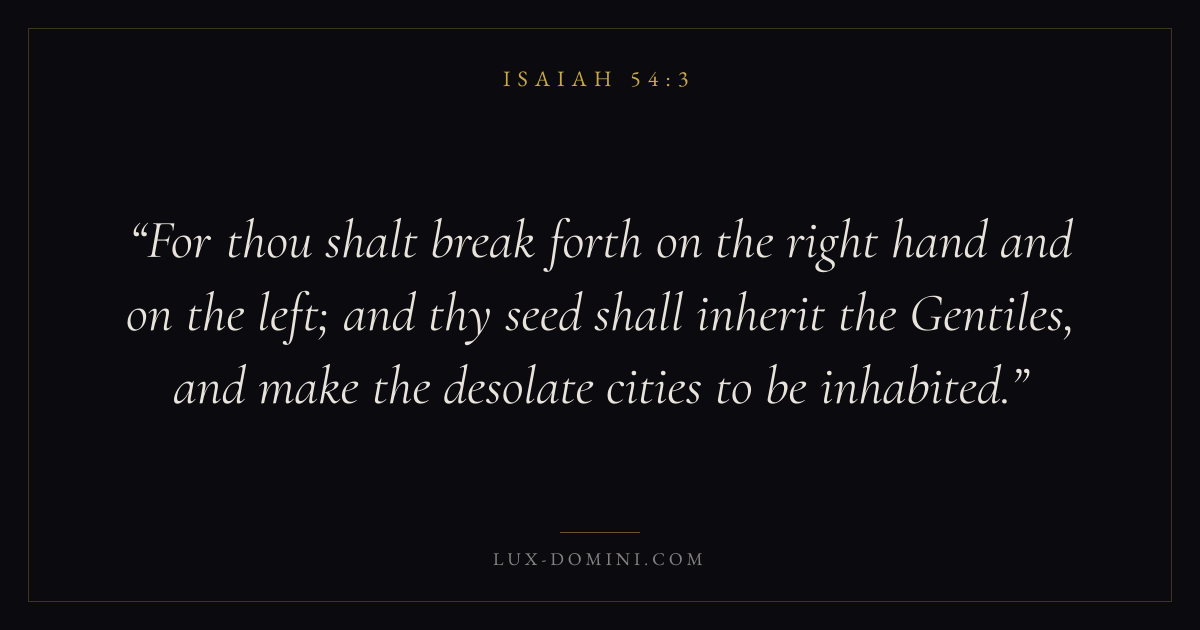 For thou shalt break forth on the right hand and on the left; and thy seed shall inherit the Gentiles, and make the desolate cities to be inhabited.