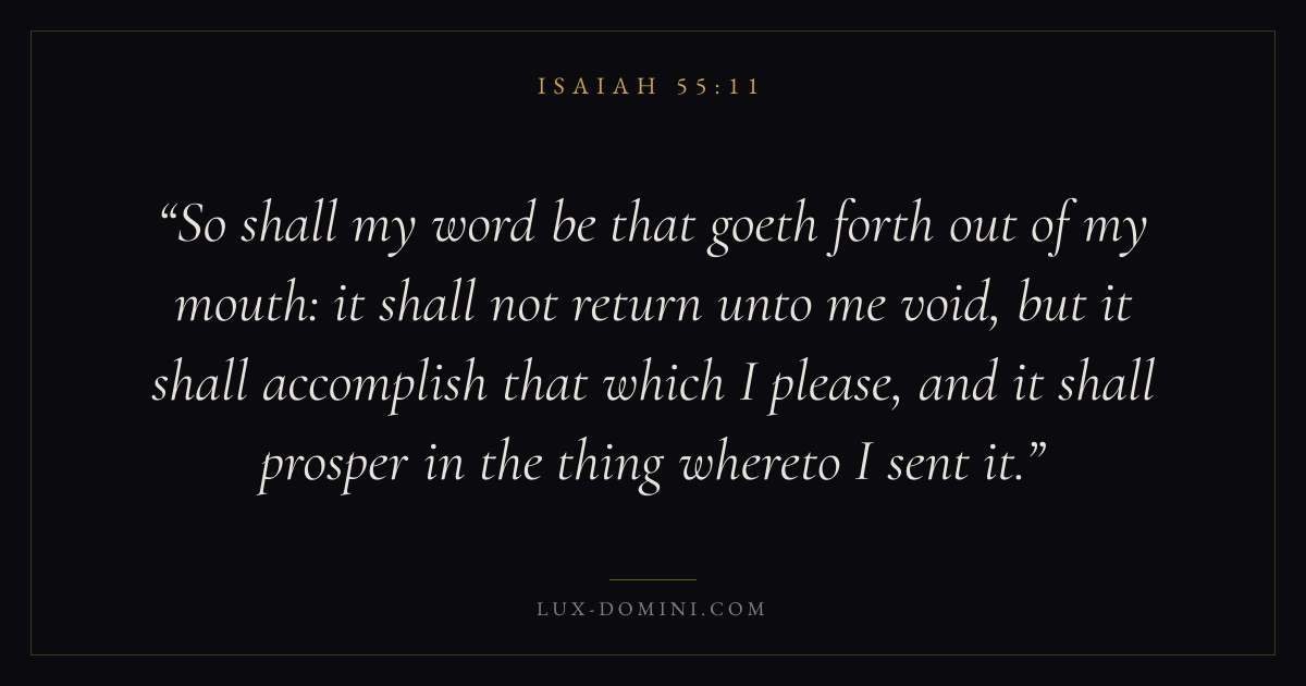 So shall my word be that goeth forth out of my mouth: it shall not return unto me void, but it shall accomplish that which I please, and it shall prosper in the thing whereto I sent it.