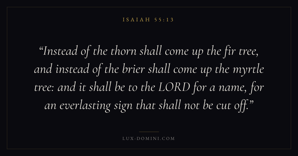 Instead of the thorn shall come up the fir tree, and instead of the brier shall come up the myrtle tree: and it shall be to the LORD for a name, for an everlasting sign that shall not be cut off.