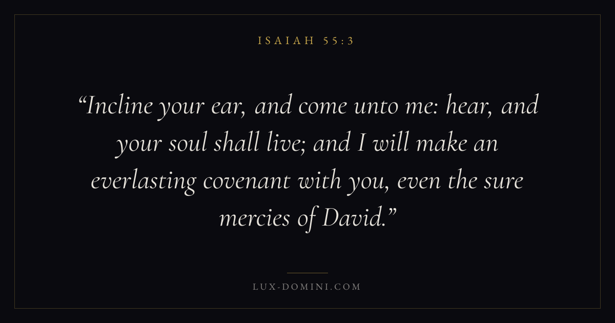 Incline your ear, and come unto me: hear, and your soul shall live; and I will make an everlasting covenant with you, even the sure mercies of David.