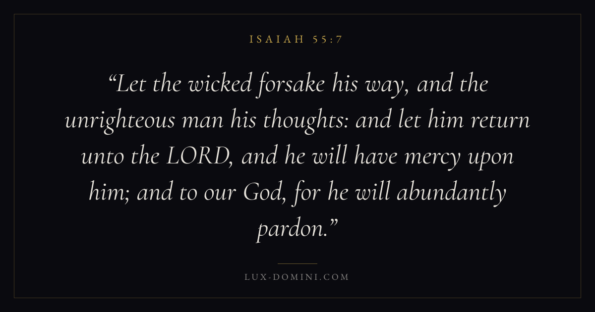 Let the wicked forsake his way, and the unrighteous man his thoughts: and let him return unto the LORD, and he will have mercy upon him; and to our God, for he will abundantly pardon.