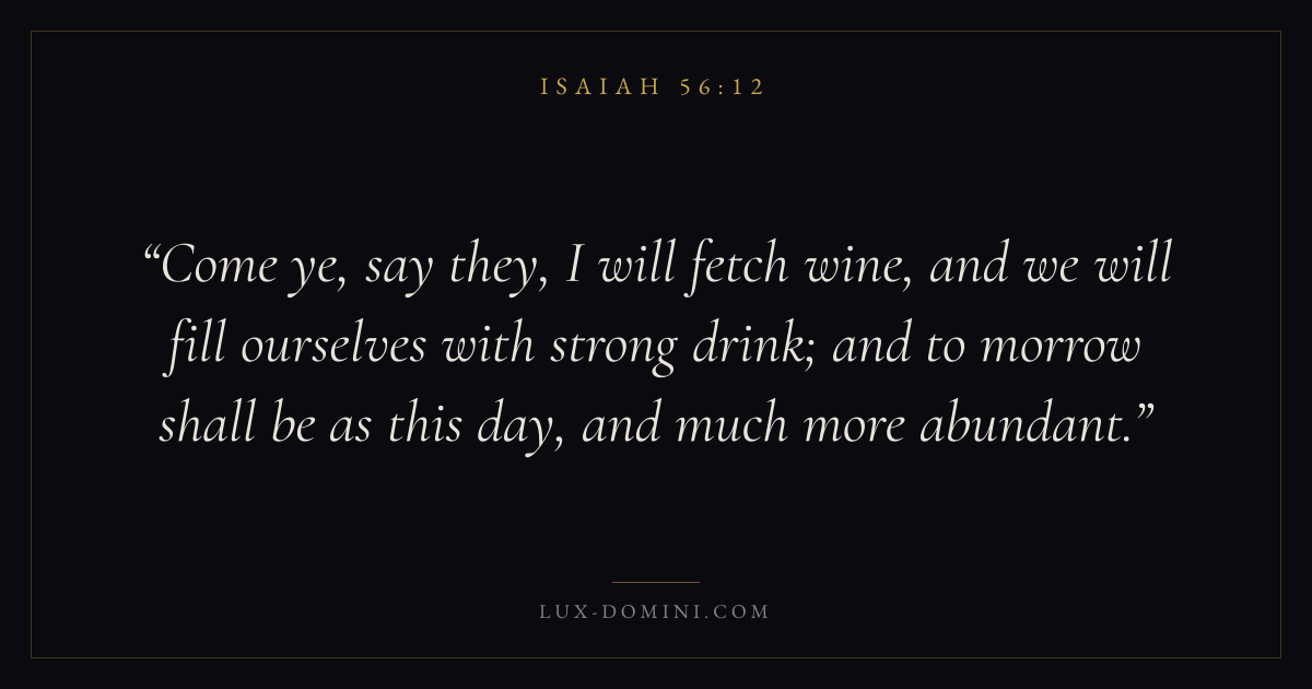 Come ye, say they, I will fetch wine, and we will fill ourselves with strong drink; and to morrow shall be as this day, and much more abundant.