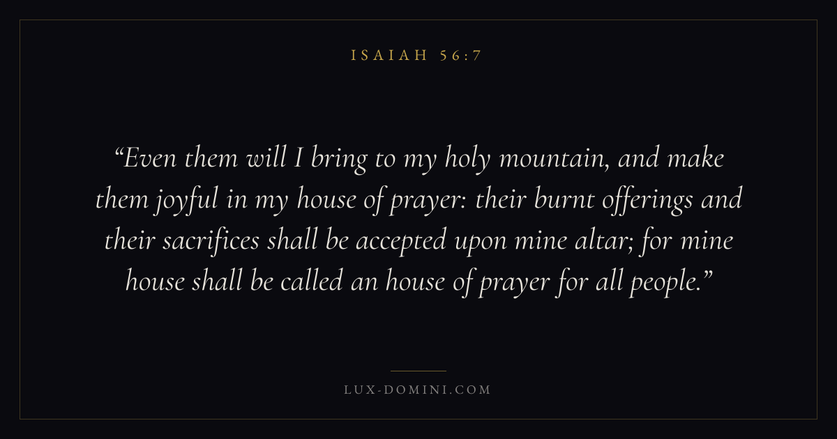 Even them will I bring to my holy mountain, and make them joyful in my house of prayer: their burnt offerings and their sacrifices shall be accepted upon mine altar; for mine house shall be called an house of prayer for all people.