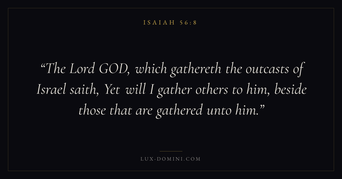 The Lord GOD, which gathereth the outcasts of Israel saith, Yet will I gather others to him, beside those that are gathered unto him.