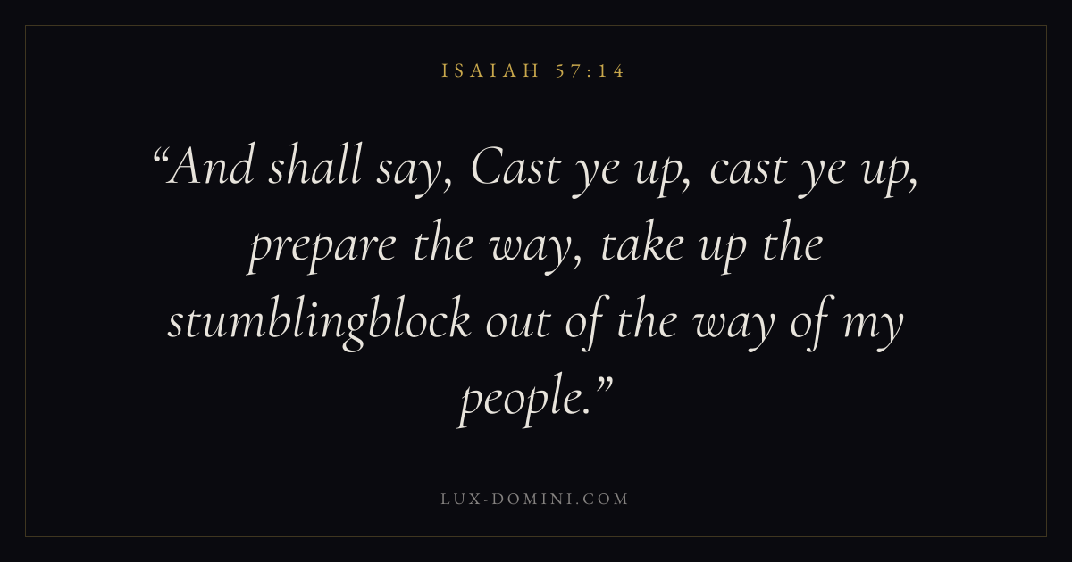 And shall say, Cast ye up, cast ye up, prepare the way, take up the stumblingblock out of the way of my people.