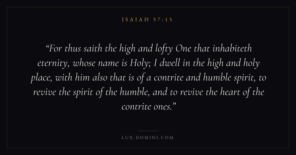 For thus saith the high and lofty One that inhabiteth eternity, whose name is Holy; I dwell in the high and holy place, with him also that is of a contrite and humble spirit, to revive the spirit of the humble, and to revive the heart of the contrite ones.
