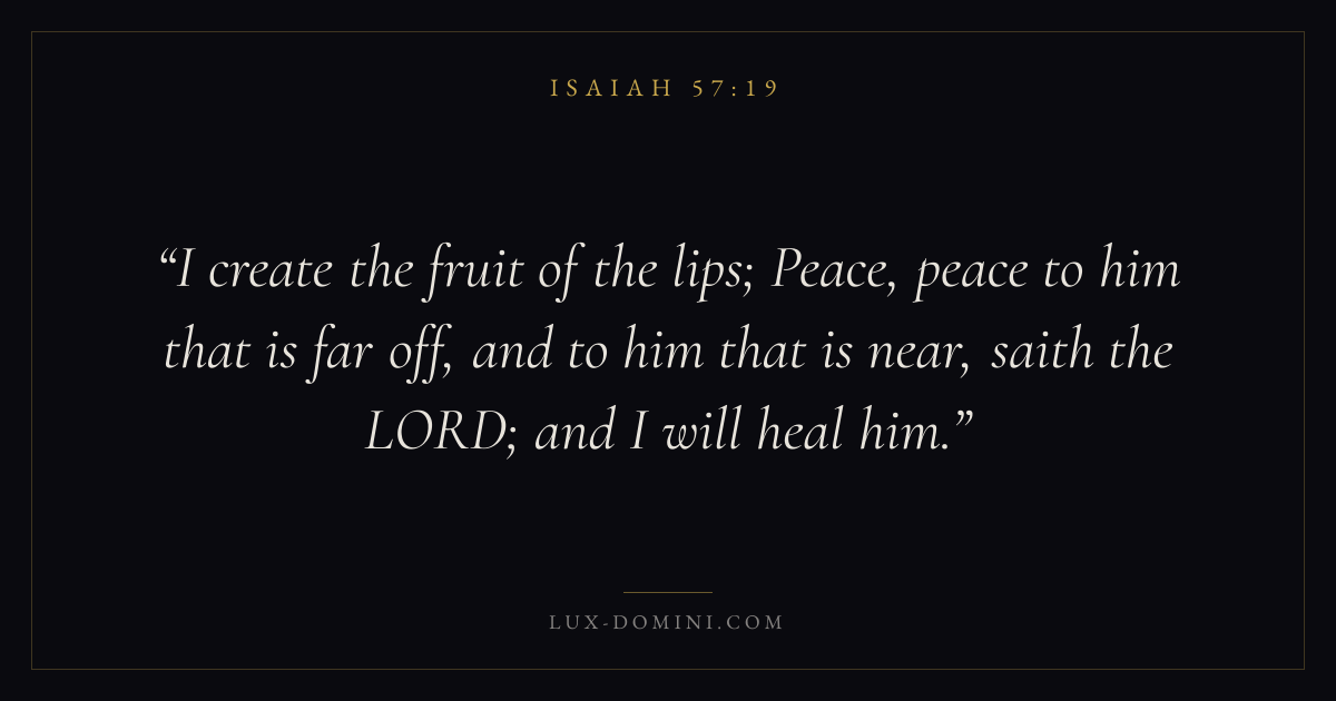 I create the fruit of the lips; Peace, peace to him that is far off, and to him that is near, saith the LORD; and I will heal him.