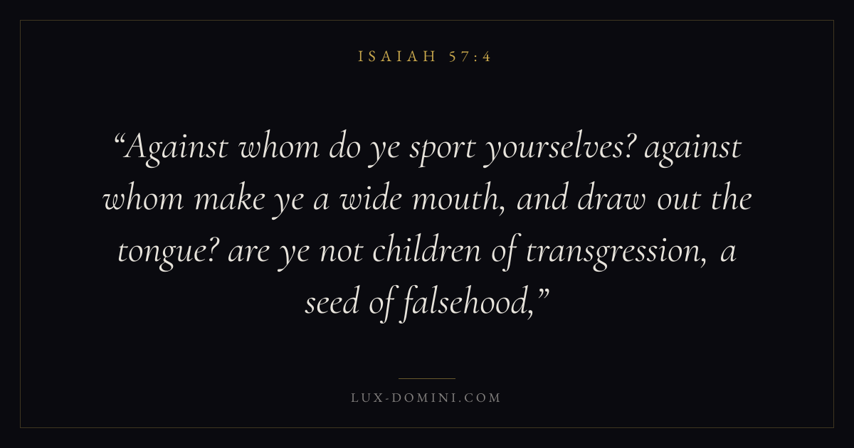 Against whom do ye sport yourselves? against whom make ye a wide mouth, and draw out the tongue? are ye not children of transgression, a seed of falsehood,