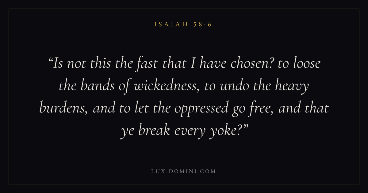 Is not this the fast that I have chosen? to loose the bands of wickedness, to undo the heavy burdens, and to let the oppressed go free, and that ye break every yoke?