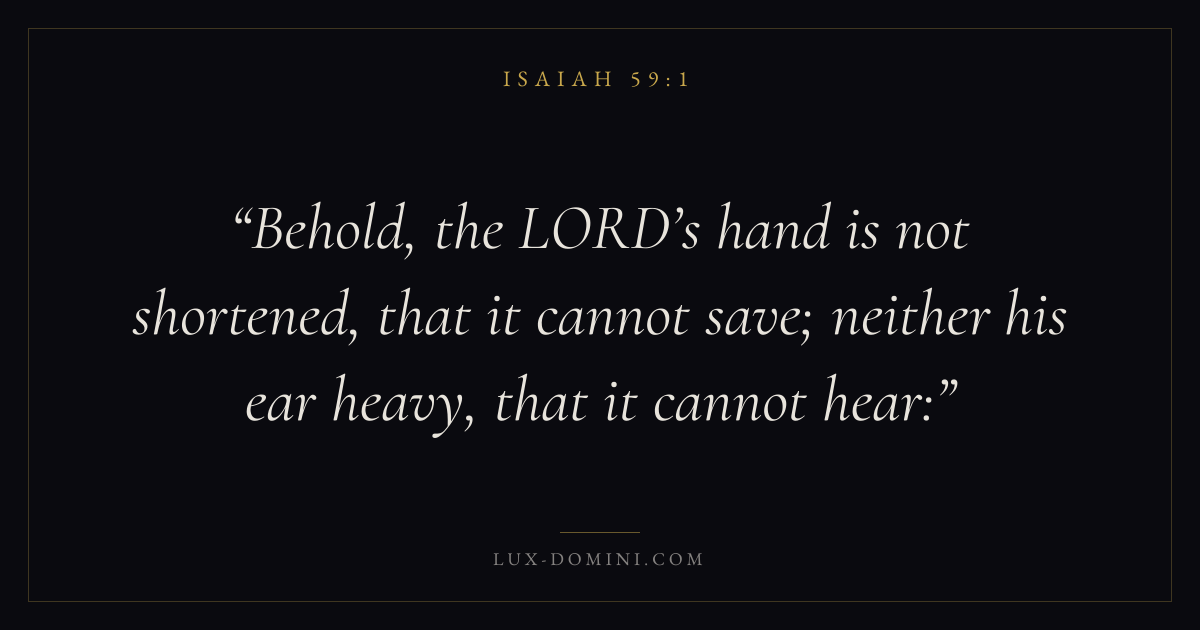 Behold, the LORD’s hand is not shortened, that it cannot save; neither his ear heavy, that it cannot hear: