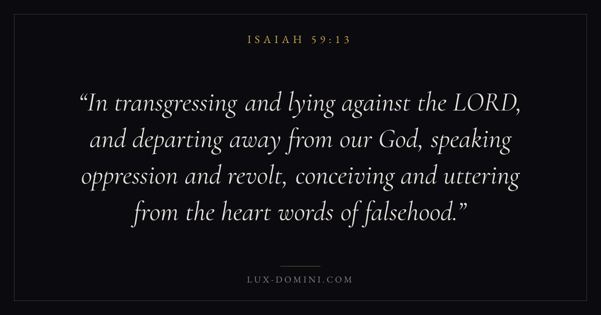In transgressing and lying against the LORD, and departing away from our God, speaking oppression and revolt, conceiving and uttering from the heart words of falsehood.