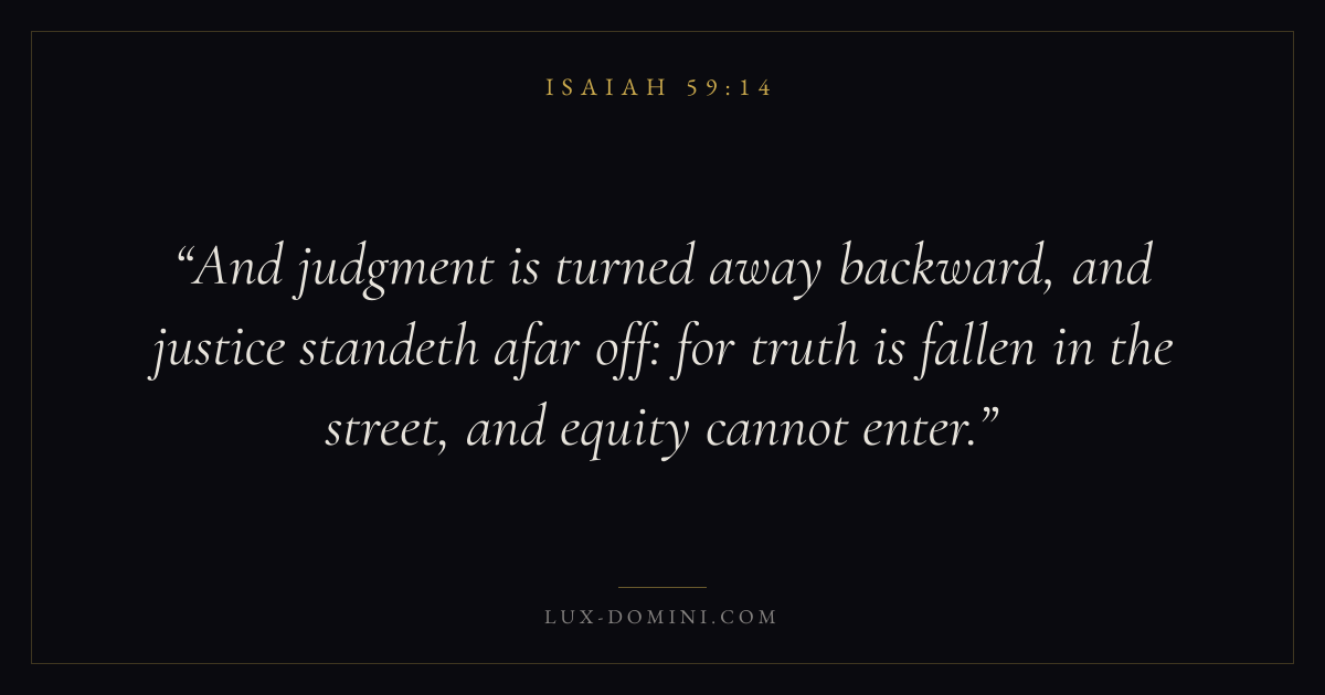 And judgment is turned away backward, and justice standeth afar off: for truth is fallen in the street, and equity cannot enter.